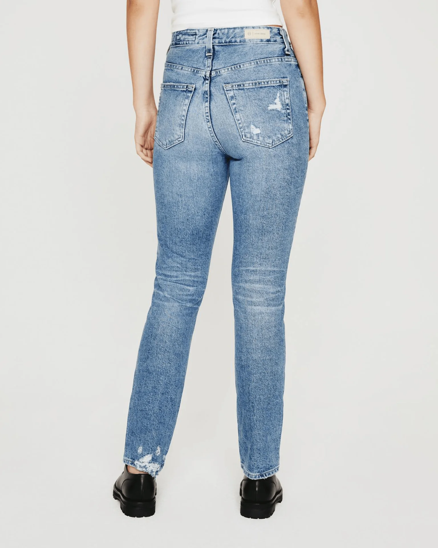 The Alexxis Slim features a natural waist-defining high-rise at 10 1/2" and a slim silhouette. With a button fly, destructed pockets and tattered hem, these jeans offer the perfected lived in look. Designed to accentuate your curves and to close the gap at the waist, this classic shape is very versatile and figure-flattering!