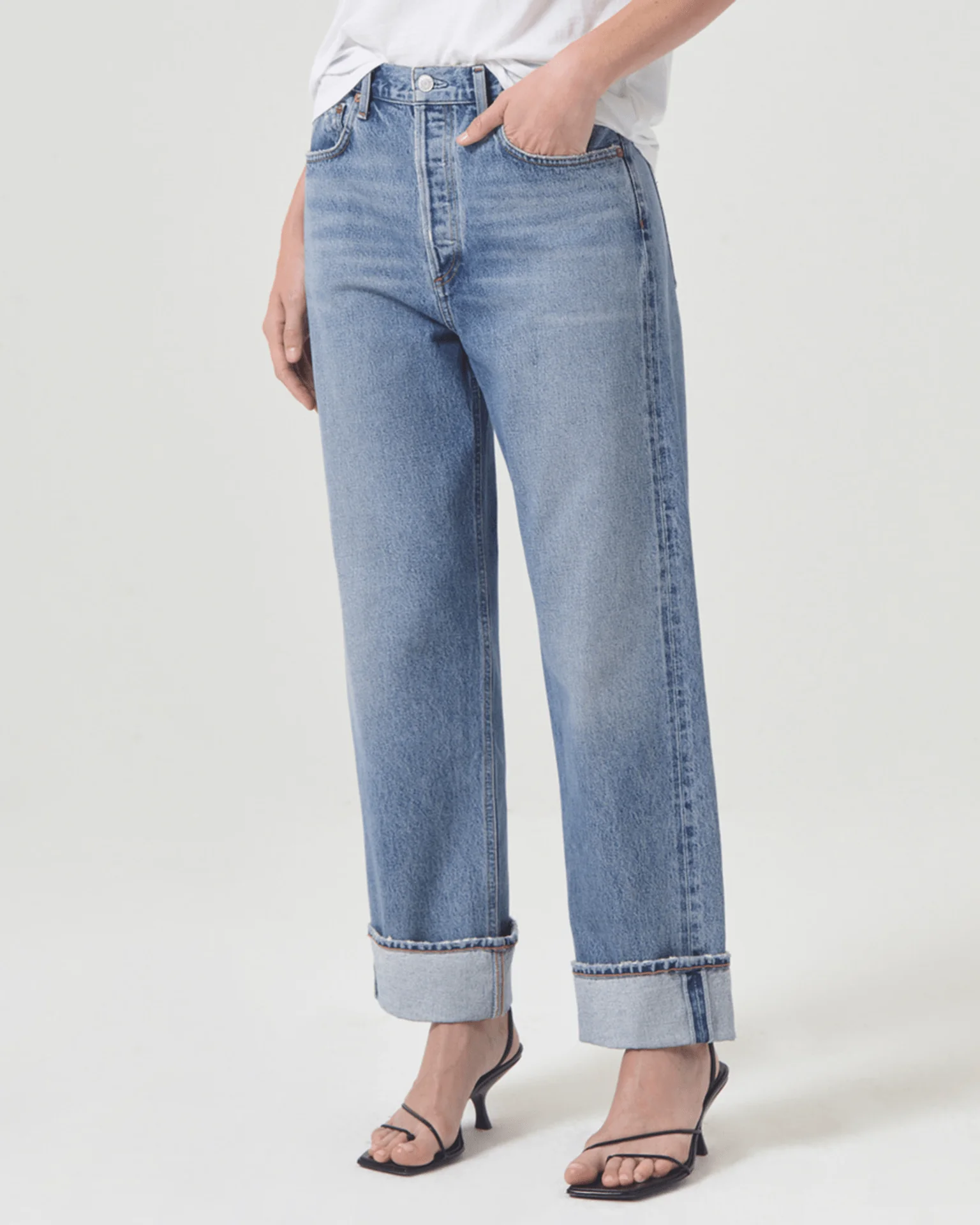 The Fran Jean from AGOLDE is a throwback classic loose straight fit. Their newest low slung, Fran features an untacked folded cuff detail and is crafted in a new regenerative, non-stretch 100% cotton. This relaxed fit will only get softer with each wear making it the pair you will never want to take off. Style them back to a sleek long sleeve or play with proportions and toss on a chunky knit.