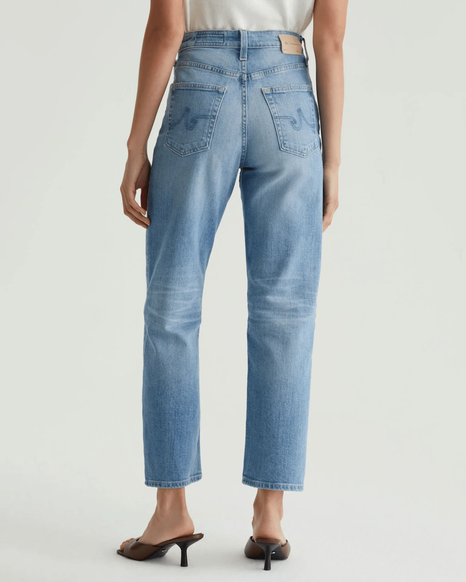 - The Rian high-rise straight from AG Jeans offers the perfect vintage-inspired fit. The style has a super-high waist and a roomy cut through the hips and legs, finishing at an ankle-skimming length. Pair these with a Velvet tee, cotton Demylee pullover and beek.. sandals for a perfect transitional outfit.