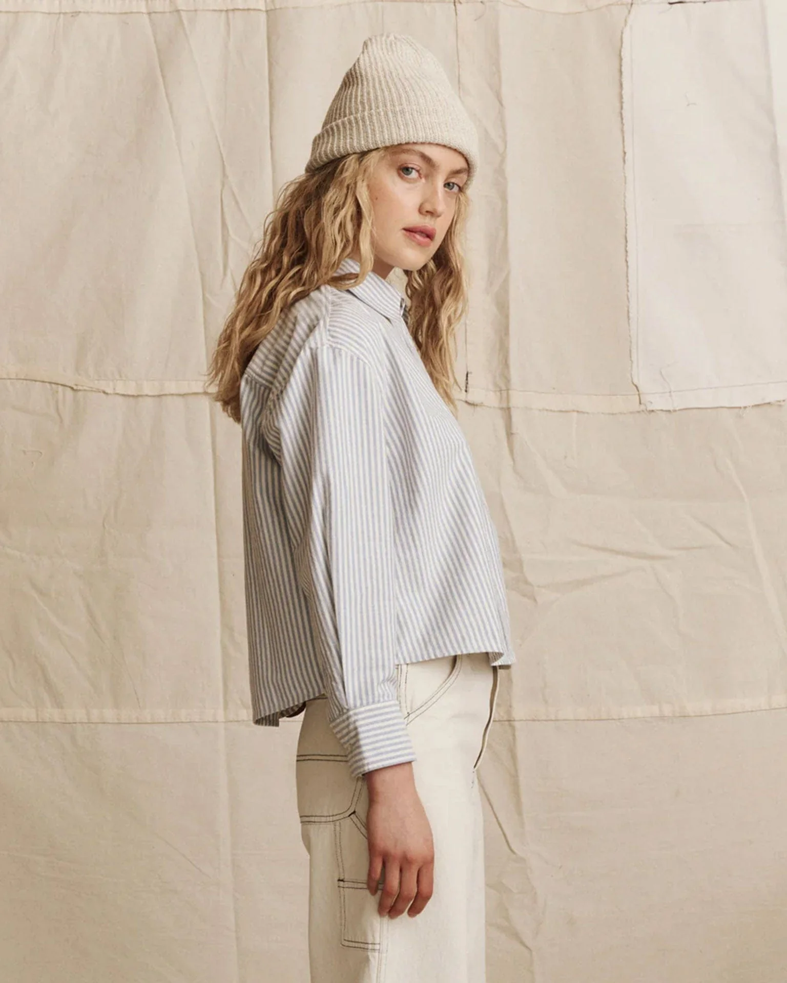 The Cropped Oxford Shirt in Soft Blue Stripe